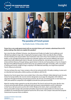 The first set of answers lies in Paris. The French constitution gives the president huge powers over foreign and defence policy, even when the government is weak. Macron uses these powers to the full – he takes a strong interest in what the EU does, is hugely experienced, brims with ideas and launches many initiatives. Other EU leaders lack Macron’s powers and skillset and do not produce the kind of ideas that he does. The way the EU works, countries that take initiatives tend to be influential.