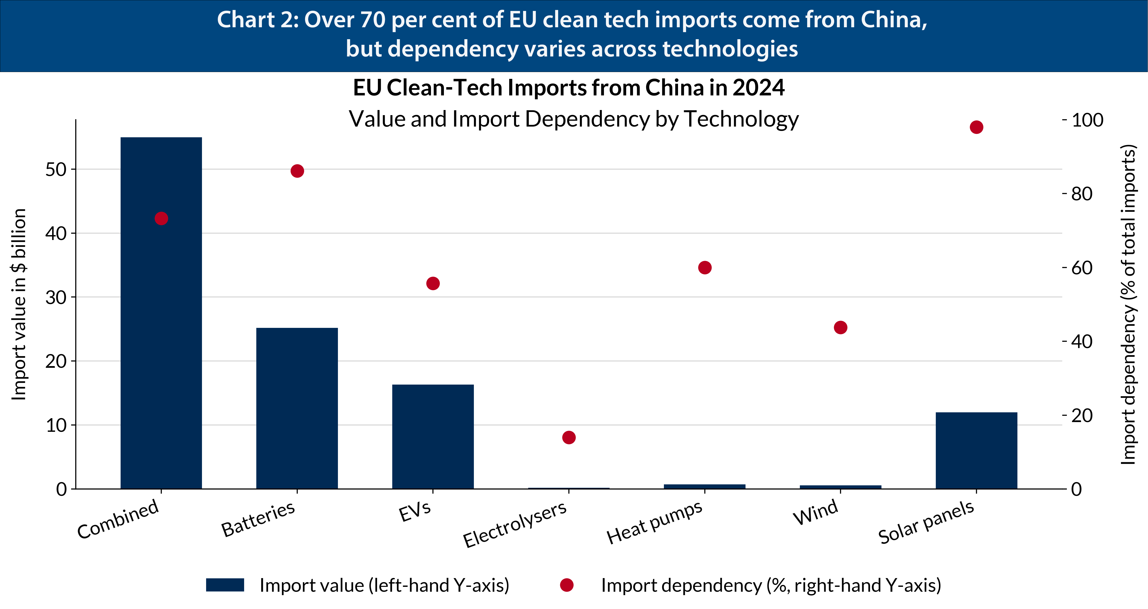 By 2024, about 73 per cent of the EU’s clean tech imports originated in China (Chart 2). This growing import concentration makes Europe highly vulnerable to tariff-induced price competition from Chinese firms, as new US trade barriers instituted by President Trump in 2025 continue to redirect low-priced Chinese exports into the EU market.